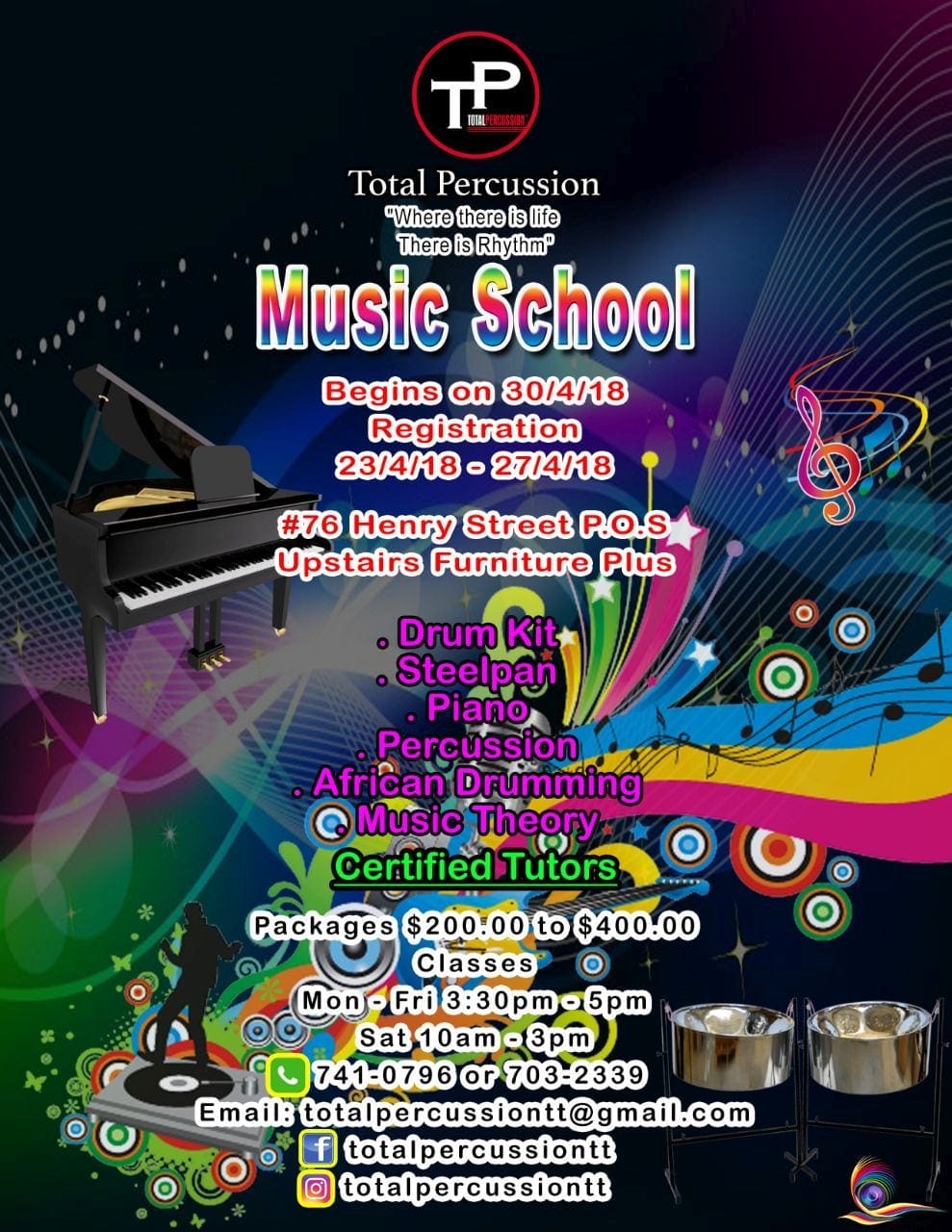 CALDATT - Total Percussion Studio - #76 Henry Street (Upstairs Furniture Plus - opposite TSTT - B4 Duke St.), POS.