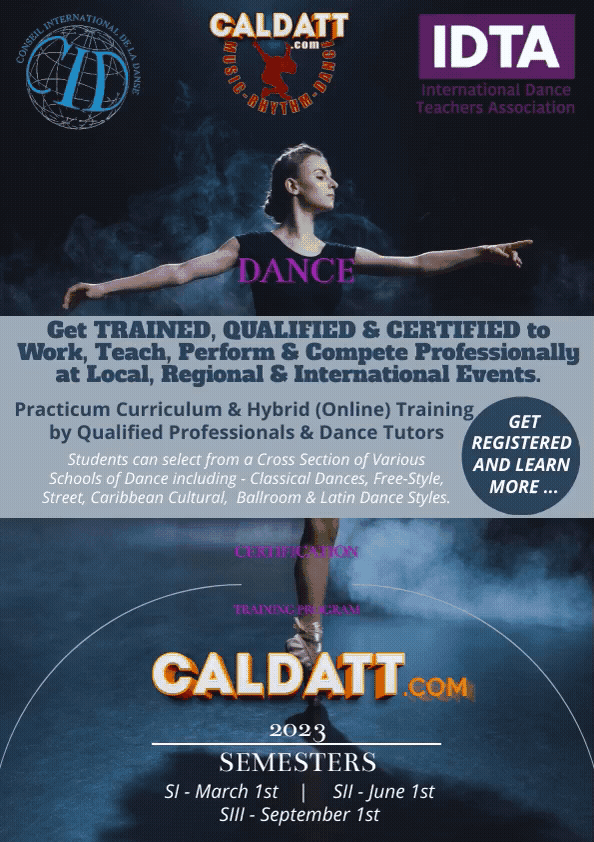 Certification Training Programs – Performers, Tutors, Trainers & Students can register for program credits towards Assessment & Certification Programs (Optional) as well as Dance Studies (Practicum) International Certification (CID) – See more information on CARIBBEAN & LATIN DANCE CERTIFICATION PROGRAM.