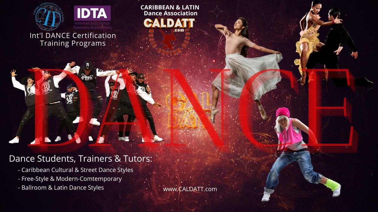 CALDATT holds affiliated association with International Dance Organizations Our Certification Programs are underwritten by reputable International Certification Agencies with over 44+ years of Dance Certification recognized globally by World Governments in more than 170 countries. These organizations are competent in bringing together top-level specialists encompassing absolutely all forms of dance. Caribbean & Free-Style Dances include all the various cultural, performance and competitive dance styles performed and generally engaged within the caribbean and world dance communities, including contemporary, free-style & street dances, ballroom & latin, afro & indo caribbean and other cultural dance styles. NOTE: Established Tutors, experienced dancers & other professionals can apply for experiential assessments, which is to be prescribed by the Program Certification Committee, for special credits towards professional certification level achievements . . . These Special Assessments may include the submission of proven and documented records as well as practical assessment exercises to be fulfilled or completed by applicant(s). * See DANCE PROGRAM SYLLABUS & WORKSHOPS on related Tabs* |